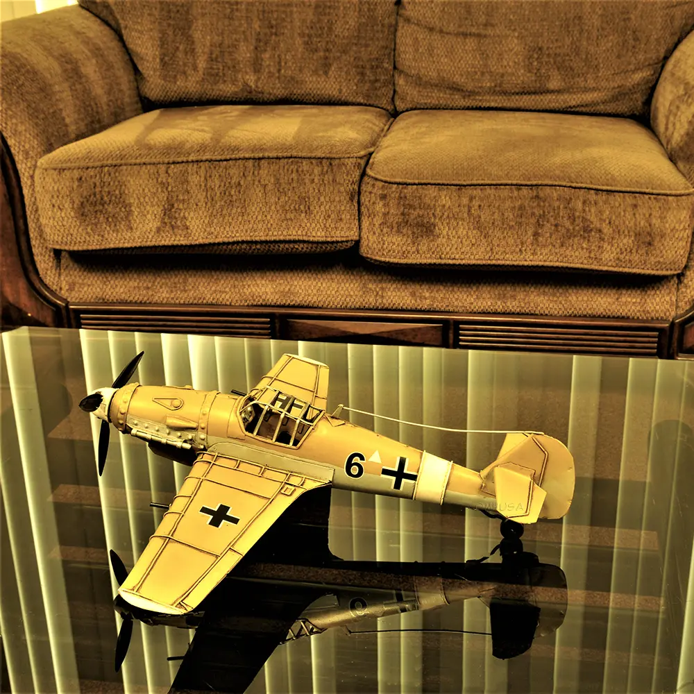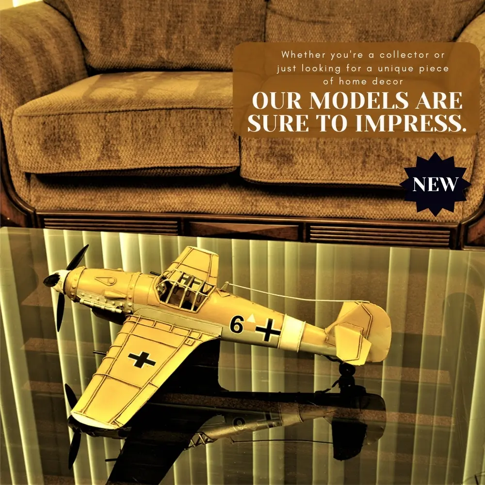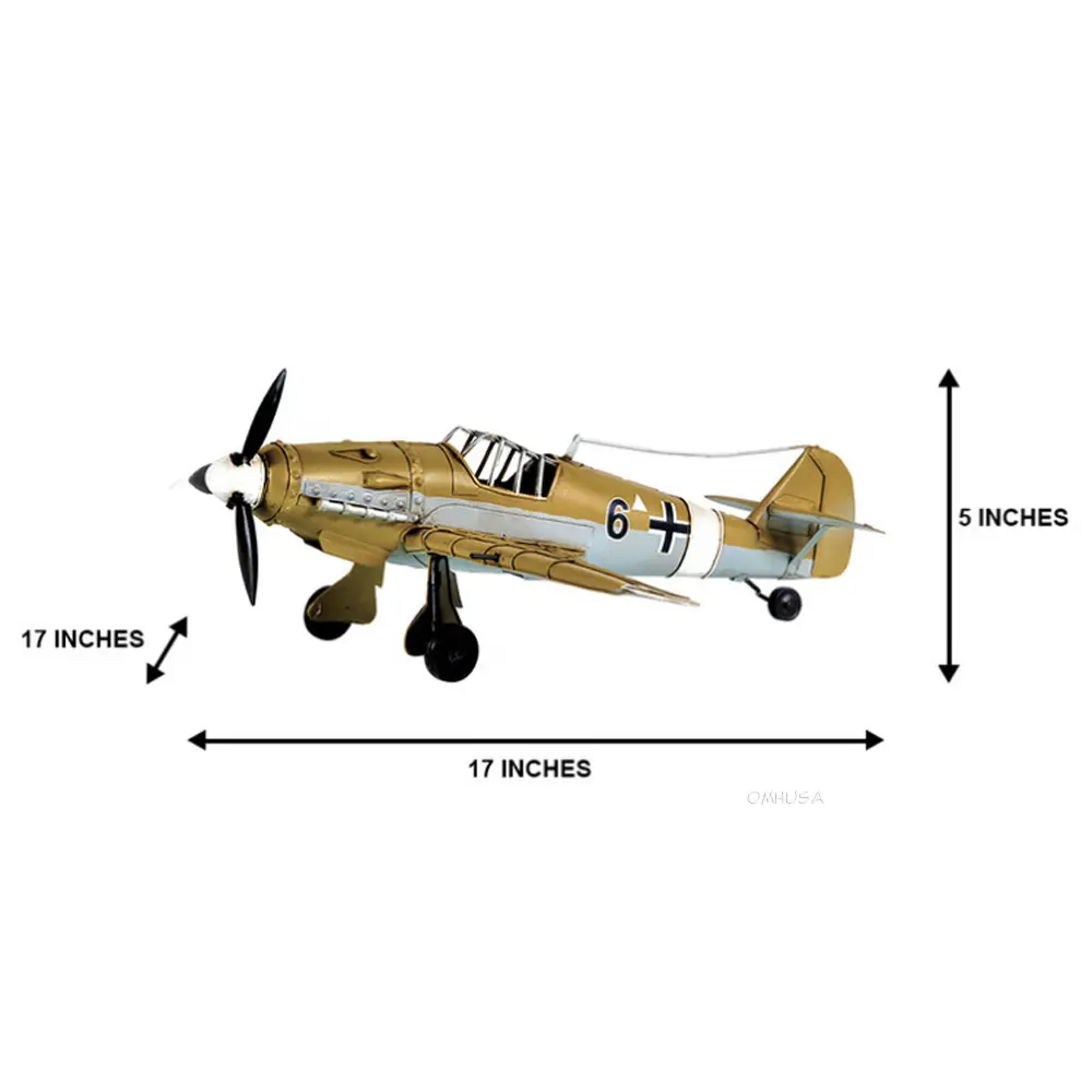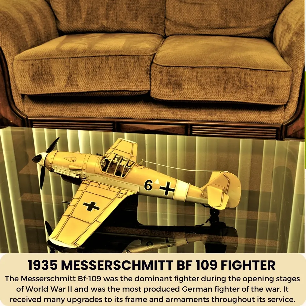 - Intricate Detailing: Meticulously handcrafted from iron, this model captures the essence of the iconic Messerschmitt Bf-109, featuring detailed mock wing cannons and rotating gears.