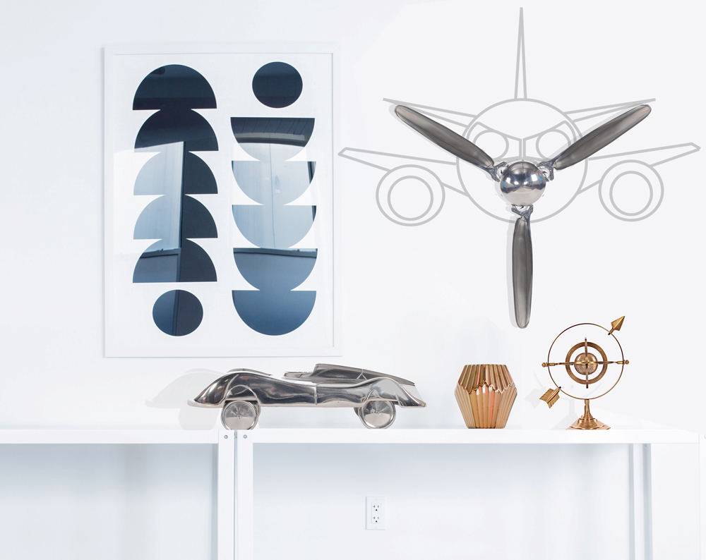 Nothing captures the spirit and nostalgia of the past like this timeless 3-blade aluminum propeller. At approximately 24 inches long, this decor piece is perfect for an aviation expert or collector. This 3-blade propeller is handsomely crafted from aluminum and topped with a nickel-plated finish. It has a neat wall-mount slot behind the propeller’s hub and comes with hardware for an easy installation. A must-have for the collector and enthusiast!