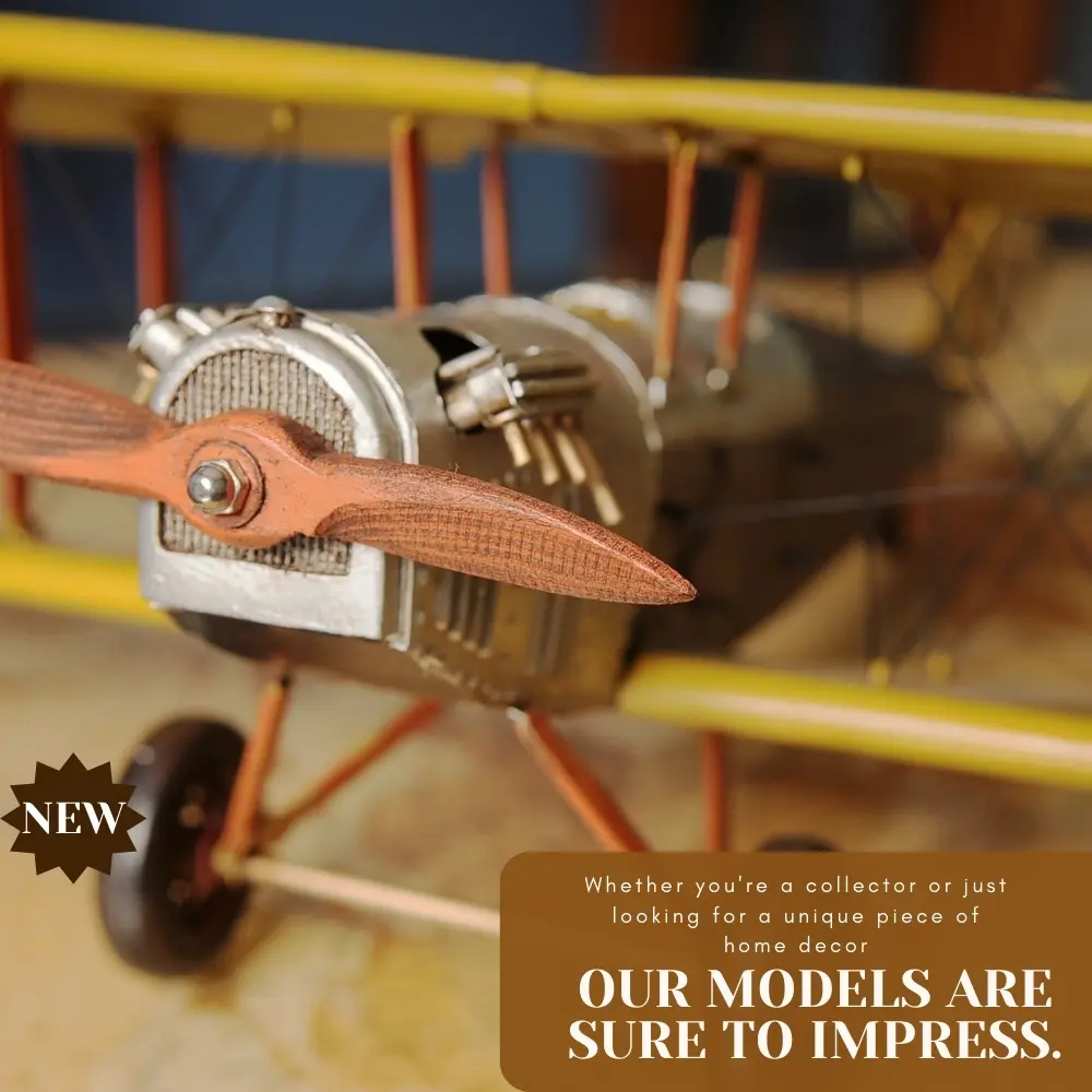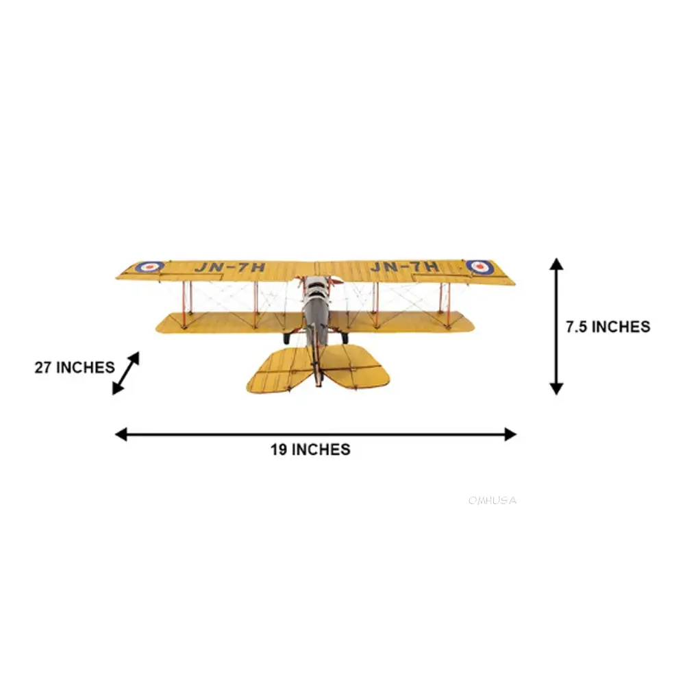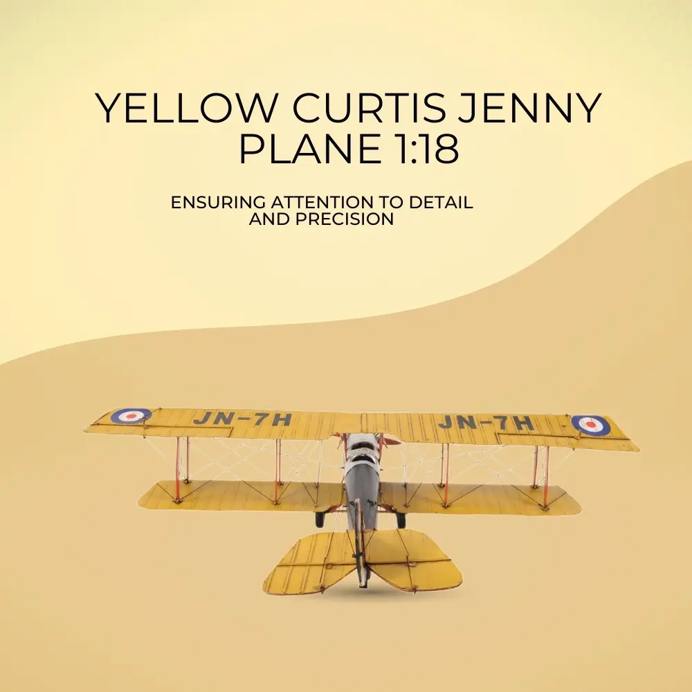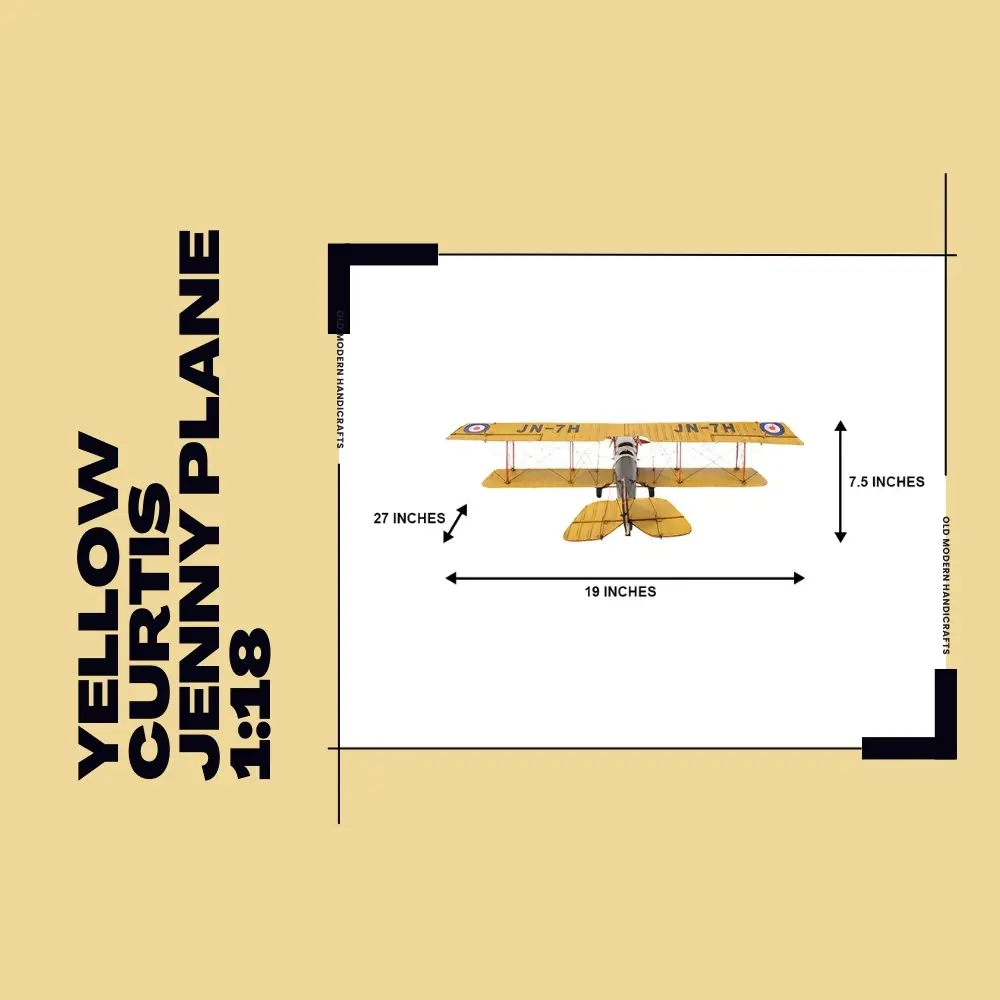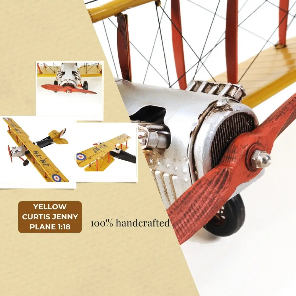 The Curtiss JN-4 “Jenny” was one of a series of “JN” biplanes built by the Curtiss Aeroplane Company of Hammondsport, New York. This fighter bi-plane was one of the most capable, faster and stronger than many of its contemporaries. This replica model of the Curtiss Jenny is handmade on a scale of 1:18. It features iron frame, wire accents, propeller and wheels. A must have for the collector and enthusiast!