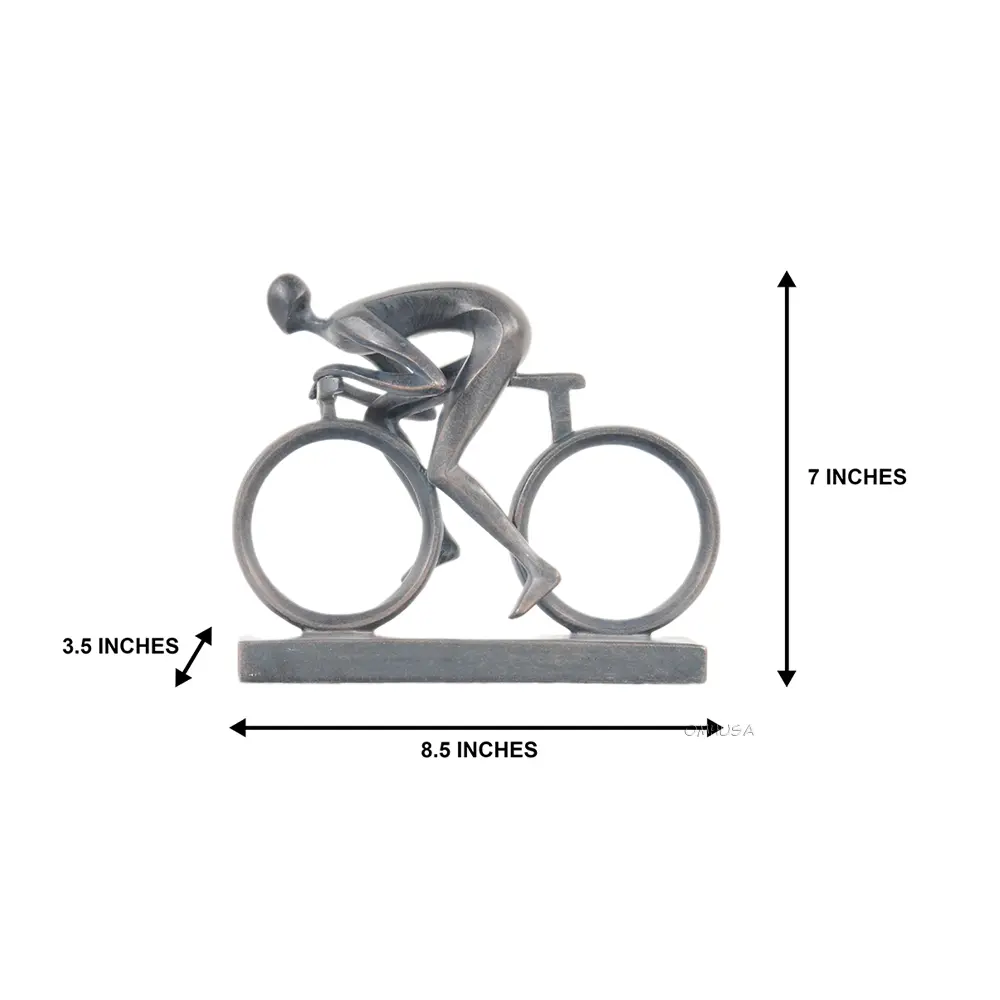• Versatile Decor: Whether on a desk, shelf, or any other tabletop, this cyclist statue effortlessly integrates into various spaces, enhancing your home decor with its artistic charm