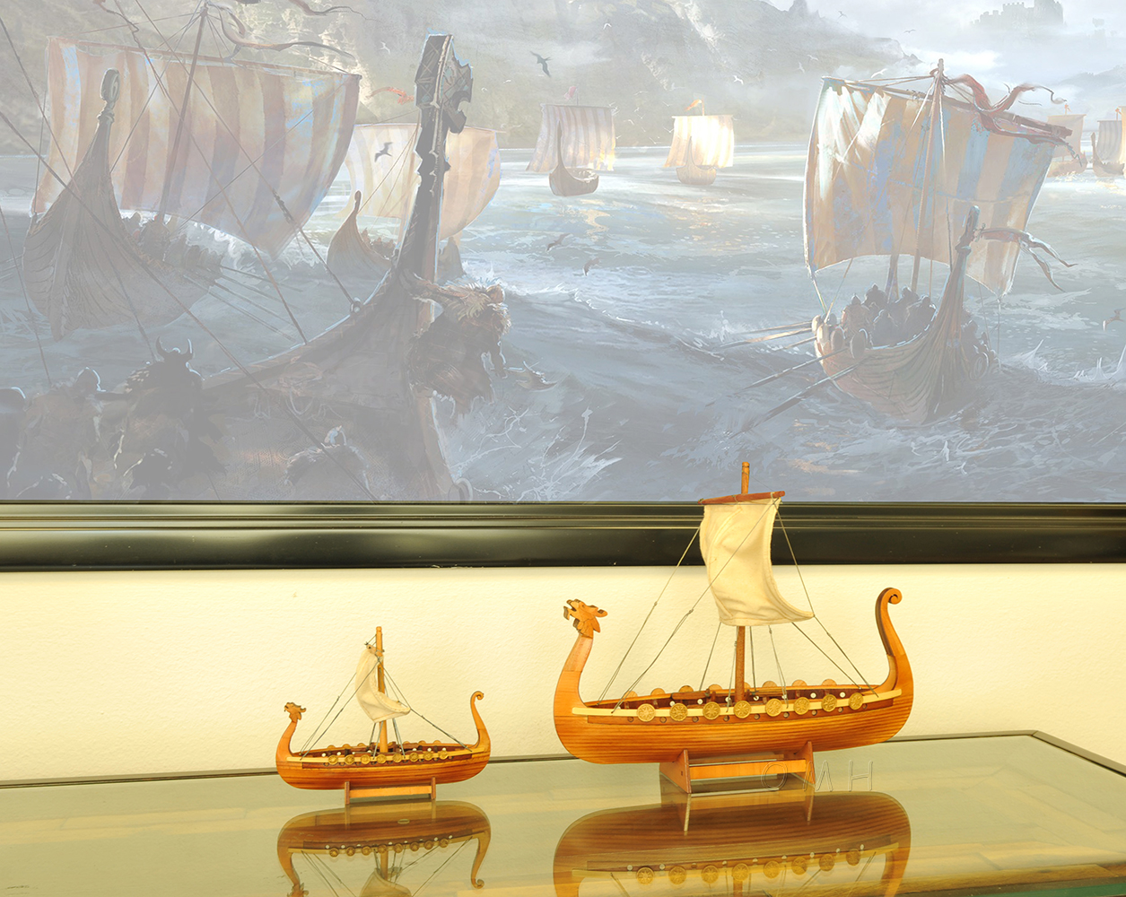 Each model takes hours to construct and undergoes a demanding quality-control process. Among the details of this boat model: lines of shields along 2 sides of boats, many wooden oars, colorful Viking sail, brass nameplate, and stand. The boat size makes it perfect for decorating a desk, table, shelf, or by a fireplace.