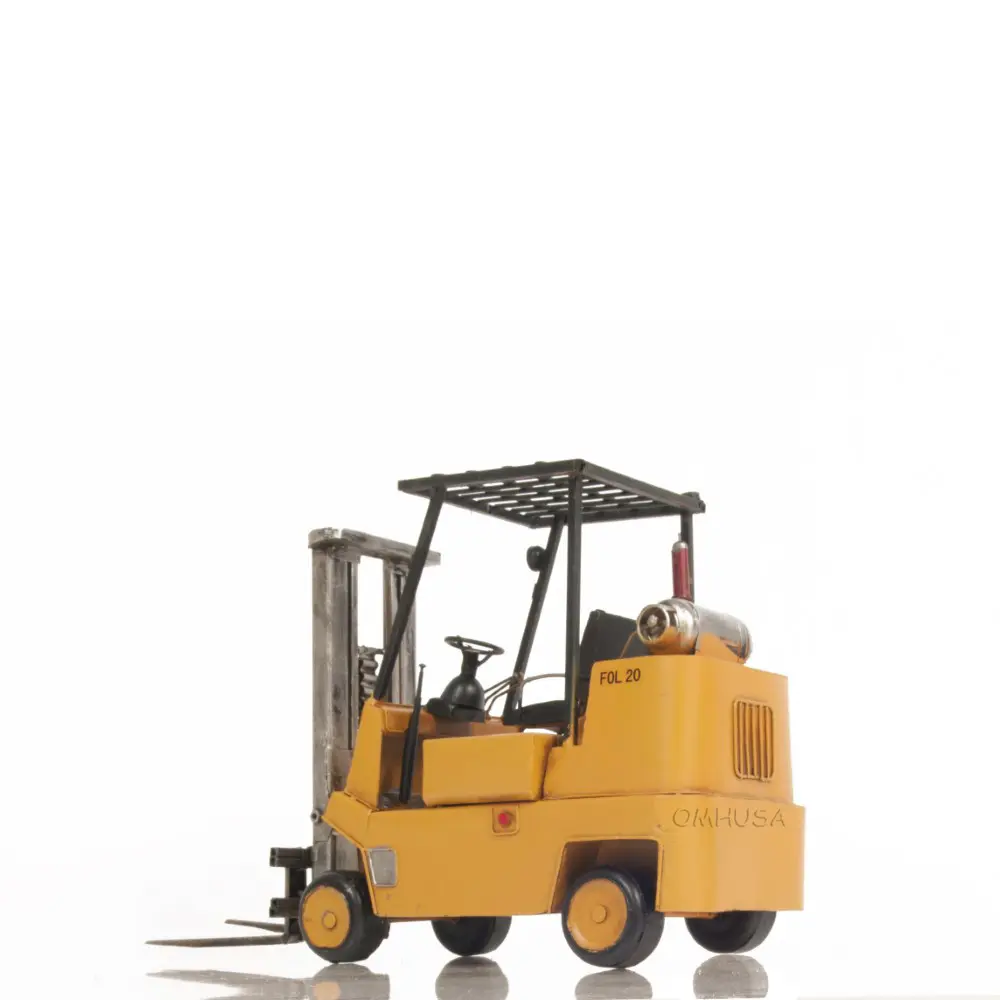 First developed in the early 20th century, forklifts have become an indispensable piece of equipment in manufacturing and warehousing. This vintage-style model is handmade out of iron by master craftsmen. Amazingly life-like parts include a detailed propane tank, gearsticks, forks, light, fire distinguisher, chain, and more.