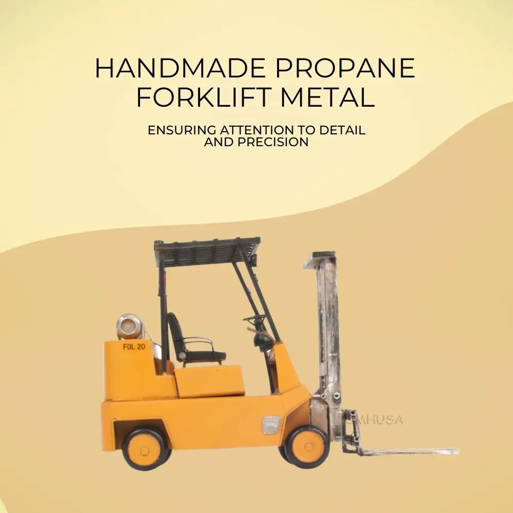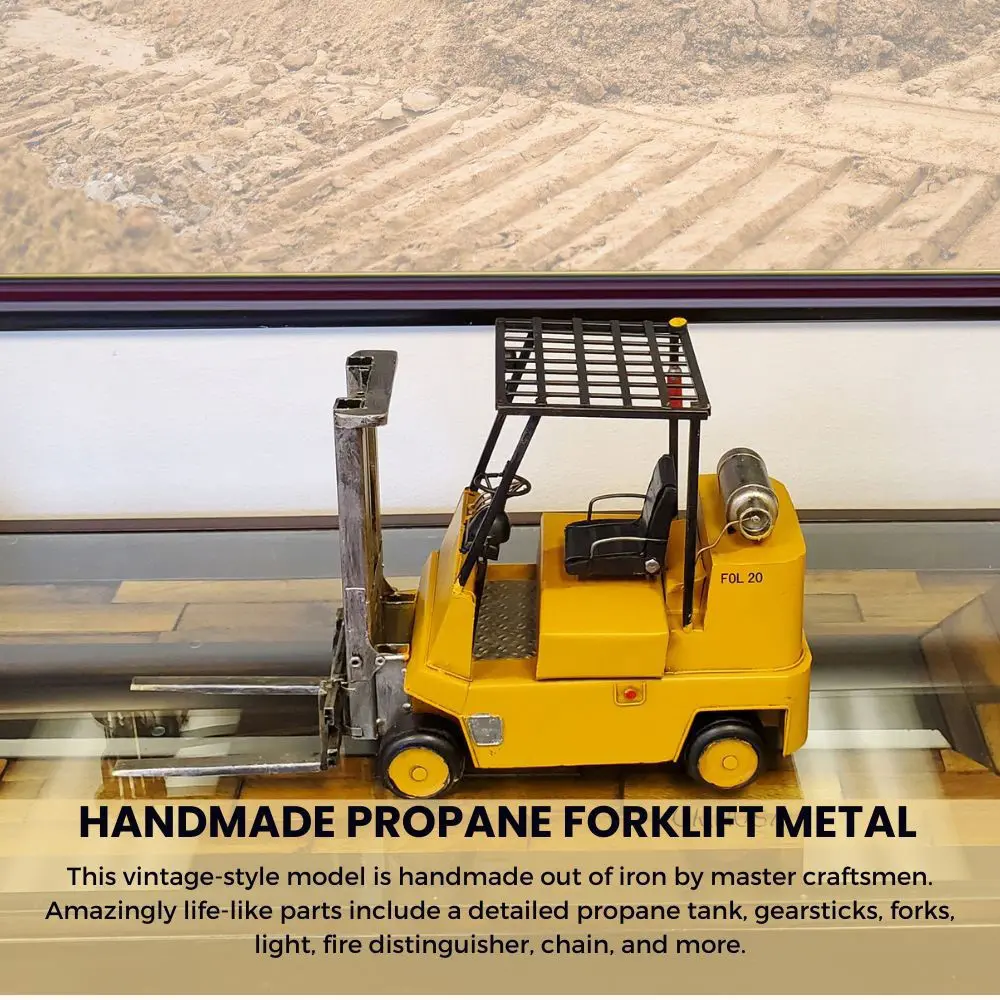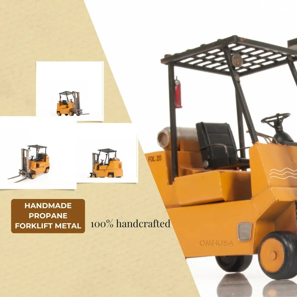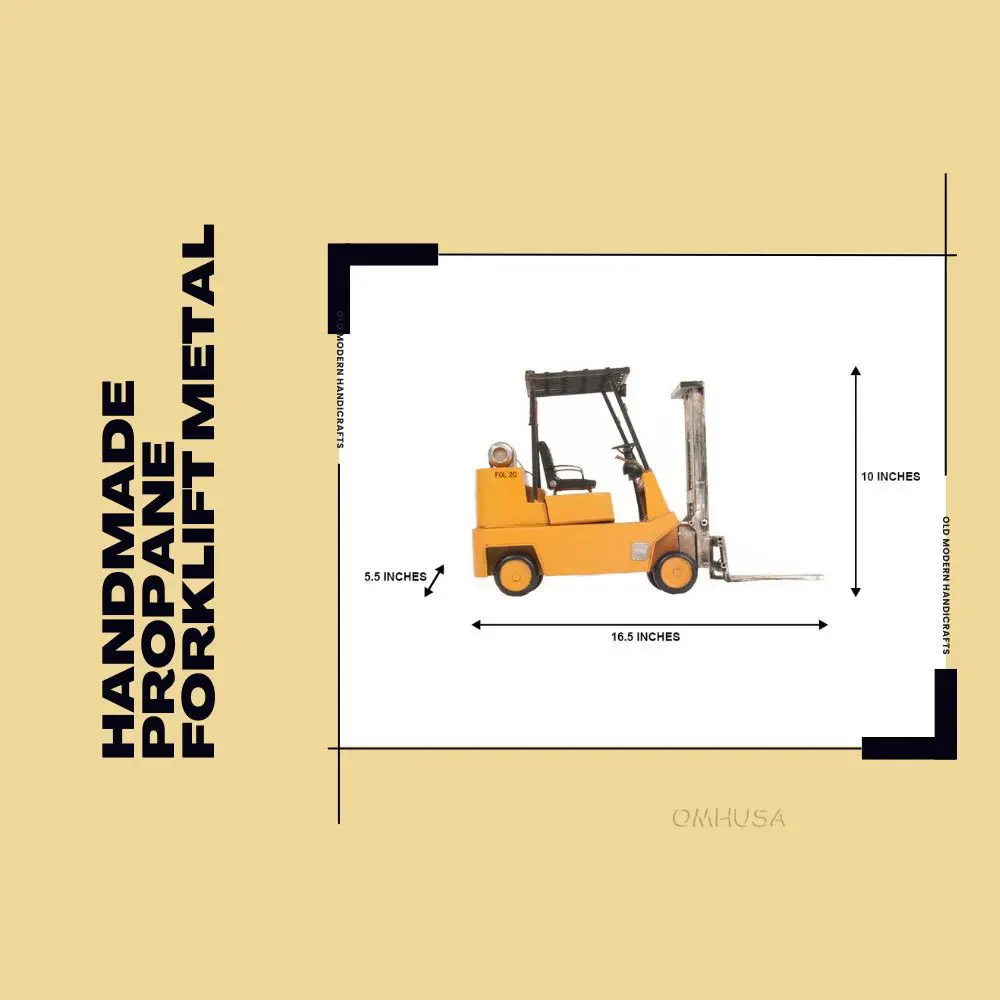 - Propane Forklift Metal Dimensions: The scale model by Old Modern Handicrafts measures 16.5″L x 5.5″W x 10″H inches, a visually striking presence in any space.