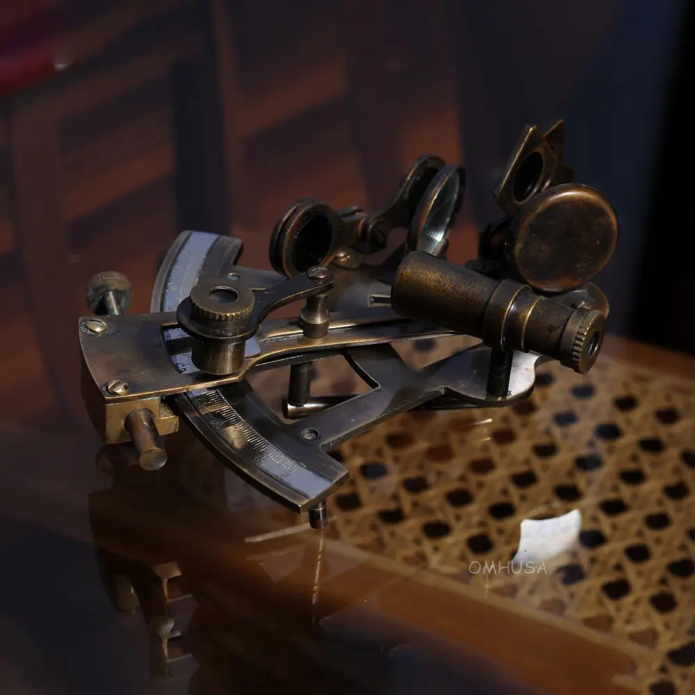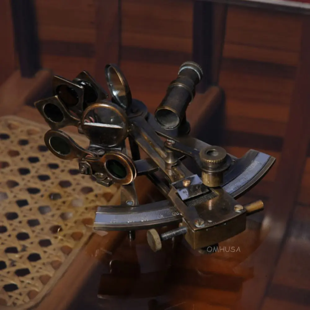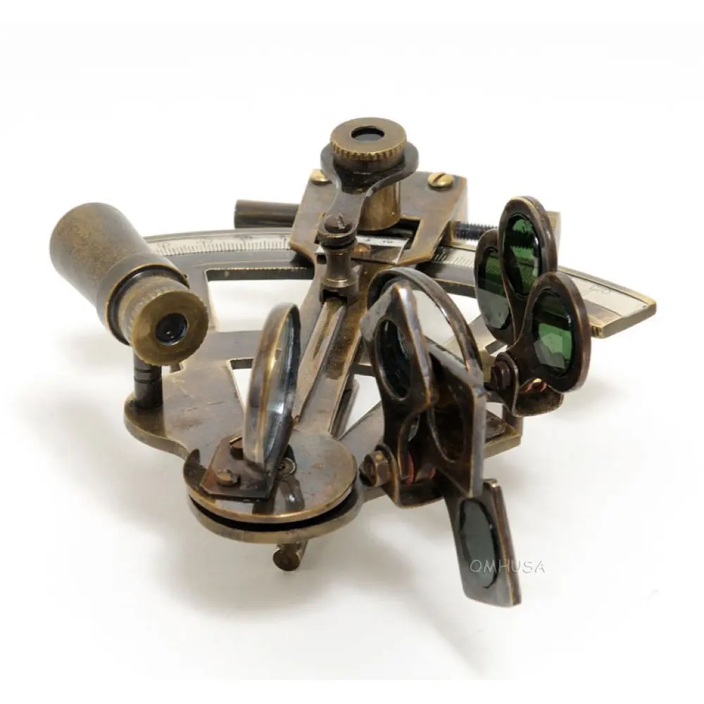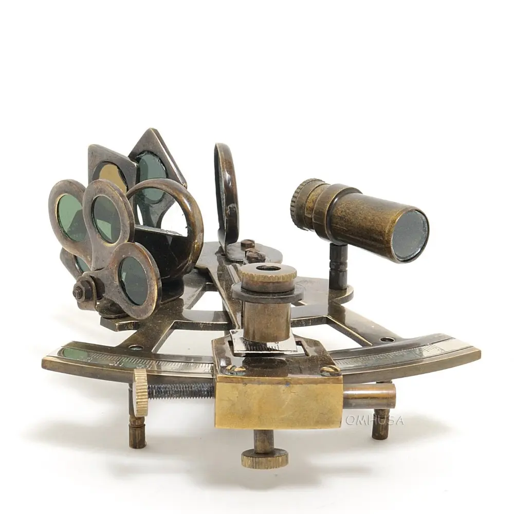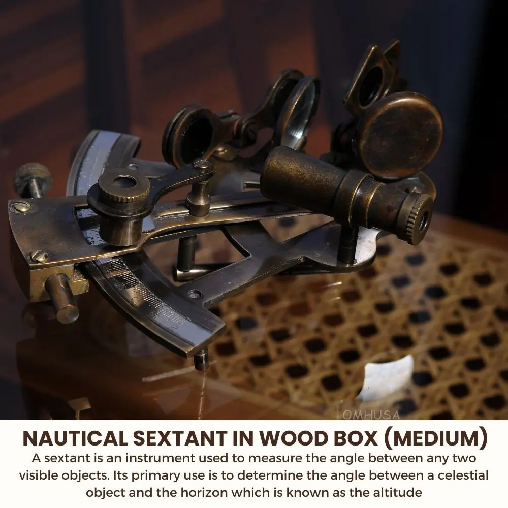 This is a fully functional nautical sextant. It is made of high quality brass. Each component is crafted with the finest craftsmanship. Available in antique brass finish and it comes in a beautiful rosewood gift box. This sextant is a great addition to any nautical collection. The item dimensions are: L: 4.5 inches, W: 4 inches, H: 2.5 inches.